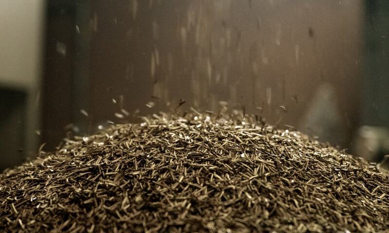また、香りは鼻からだけではなく喉を通じて口の中からも伝わります。この時に舌の奥のほうで感じる「旨み」と「香り」の相乗効果も、加賀棒茶を味わっていただく際の大切にしたい部分です。焙煎によりお茶に含まれる旨み成分が熱に反応して香り成分になることから、旨み成分と香気成分は基本的に相反関係です。火の通りが浅いと渋みの強い飲みづらいお茶になりますし、強すぎると加賀棒茶らしさがなくなり、一般的なほうじ茶になってしまいます。焙煎工程はまさしく職人の腕の見せ所なのです。
